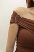A blusa maria toda em poliamida fresca possui tecido todo duplo na frente, com elástico em toda a volta do decote, também possui faixa no ombro, com elástico e fivela dourada em metal.