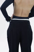A calça Clara de alfaiataria, possui cós de elástico embutido com cadarço para amarrar na frente, para descontrair a ideia da alfaiataria mais séria traz esse cós descontraido. O fecho é na lateral com zíper invisível.