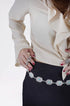 Cinto boho vintage de corrente em medalhas, com pedra turquesa no meio. Veste do P ao G pois possui externsor. Ótimo para compor um mix ou um look mais básico