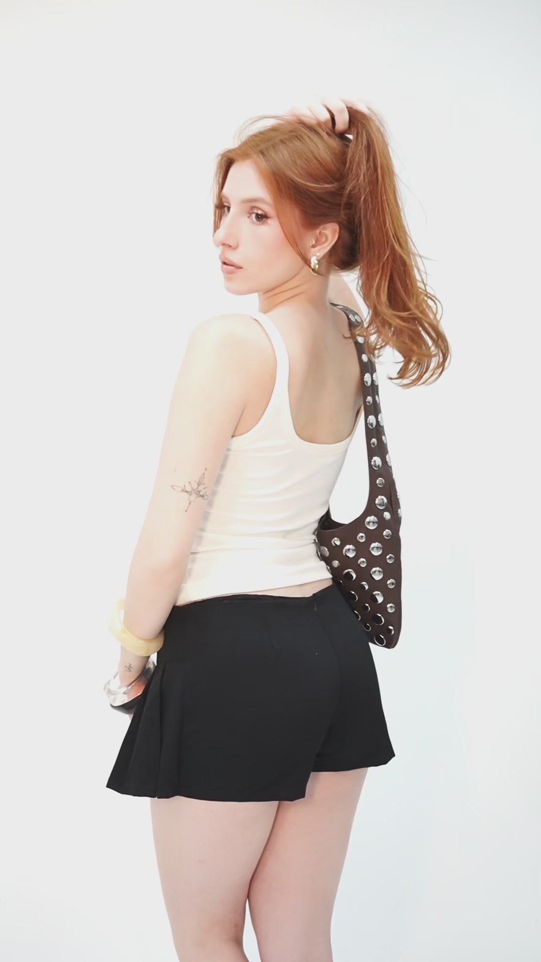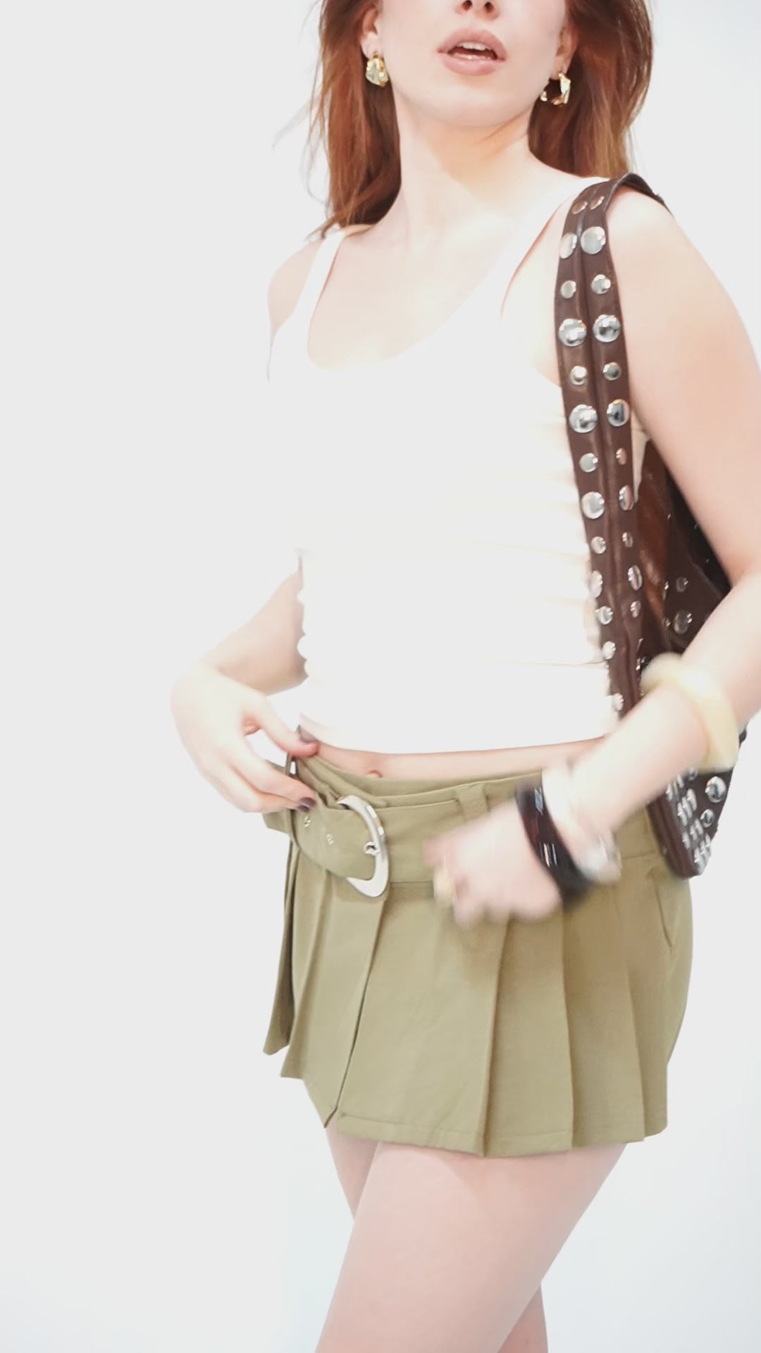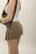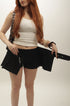 O short saia luna, possui a modelagem mini e cintura baixa com pregas na frente, a saia é apenas na parte da frente costurada no cinto com ferragem prata, como mostra nas fotos. conforme o cinto é aberto a saia acompanha.
